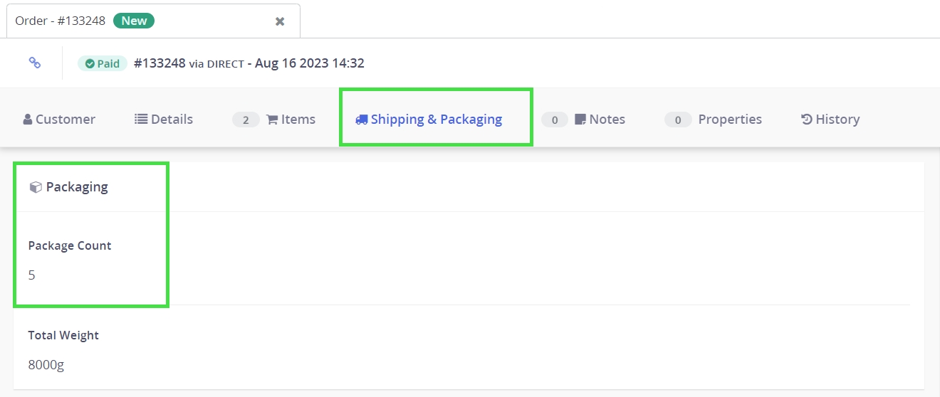 Info! To keep a record, an order that had its packaging split using the Package Splitter app will have the number of packages recorded under Edit Order Details > Shipping & Packaging.